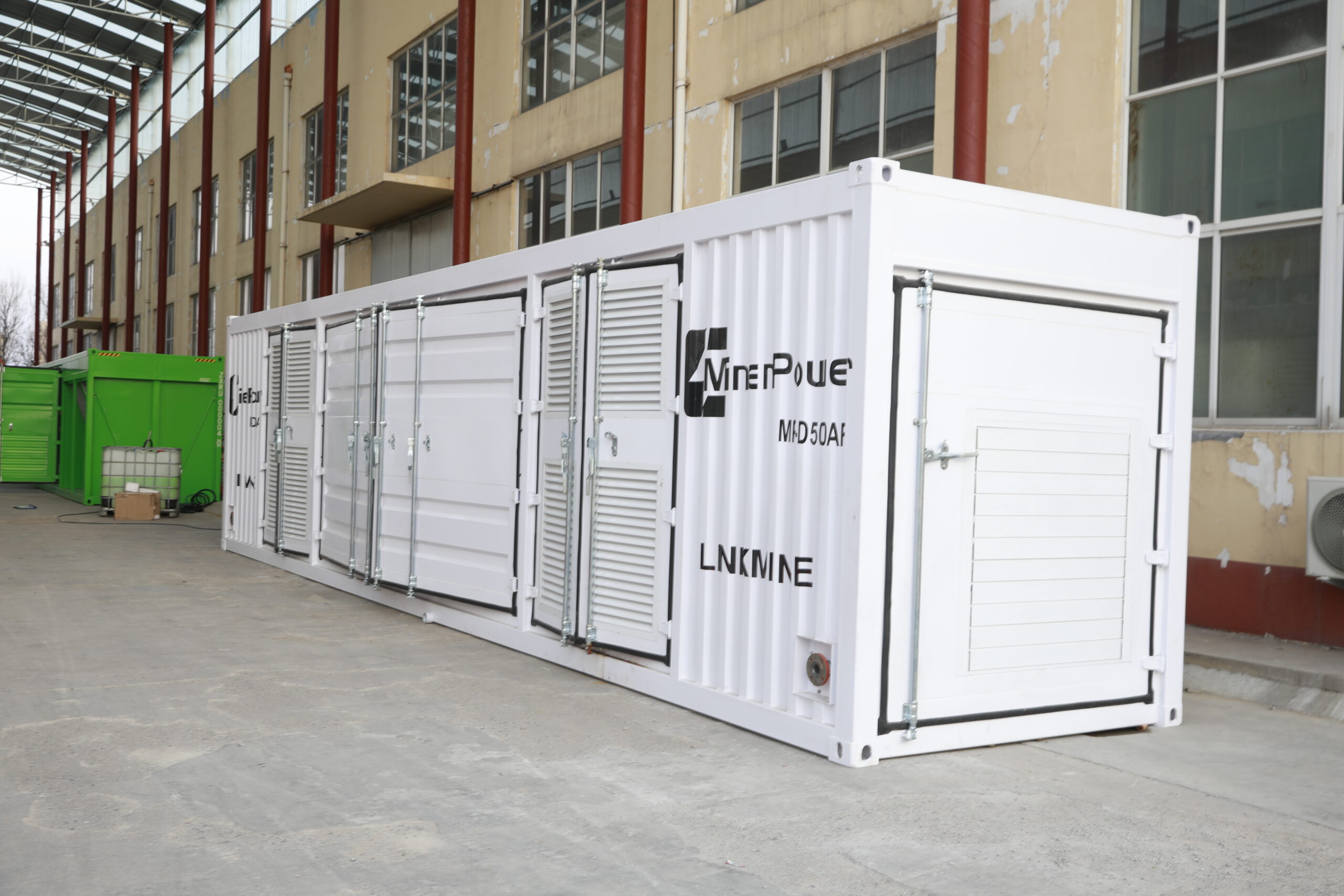 Designed specifically for harsh, extreme cold environments, this integrated containerized product combines computing power mining machines and energy-powered generator sets. It perfectly combines an air-cooled data center with a generator set. The container comes pre-installed with two gas-fired generator sets, totaling 500kW of continuous power. It also integrates 140 air-cooled slots, along with corresponding network equipment, PDUs, ventilation systems, and more. The product meets multiple certifications (ISO, UL, CE, and EAC), offering easy transportation and quick installation. Simply connect to the natural gas pipeline and install the corresponding mining machine to begin your digital currency mining journey.