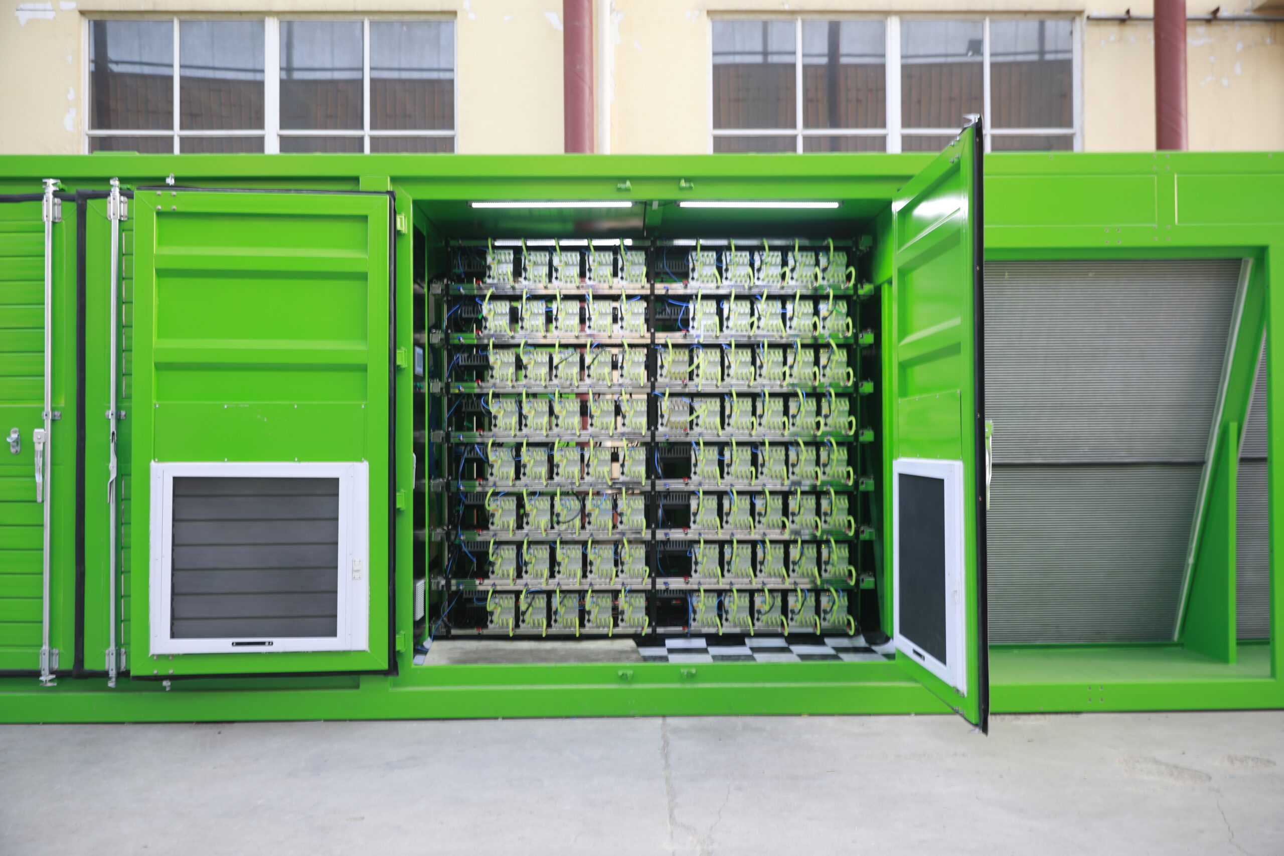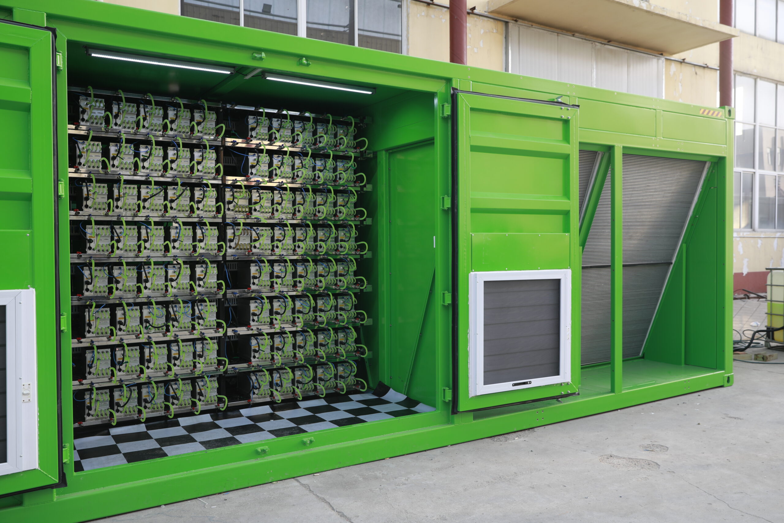 Developed specifically for high-temperature environments, this integrated containerized product combines a mining rig and an energy-powered generator set. This seamless combination of data center and generator sets provides a more stable and efficient data center. The container comes pre-installed with two gas-fired generators, each with a combined continuous power of 500kW. It also features 90 liquid cooling slots, along with corresponding network equipment, PDUs, pumps, and other components. Furthermore, two high-efficiency 500kW micro-channel dry coolers are included, minimizing equipment footprint while improving heat dissipation. The product meets multiple certifications (ISO, UL, CE, and EAC). It’s easy to transport and quick to install. Simply connect to a natural gas line and install the corresponding mining rigs to begin your digital currency mining journey.